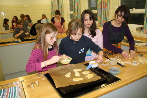 Informationen über die Schule, und in der Schulküche konnten "Käsefüße" gebacken und verkostet werden.